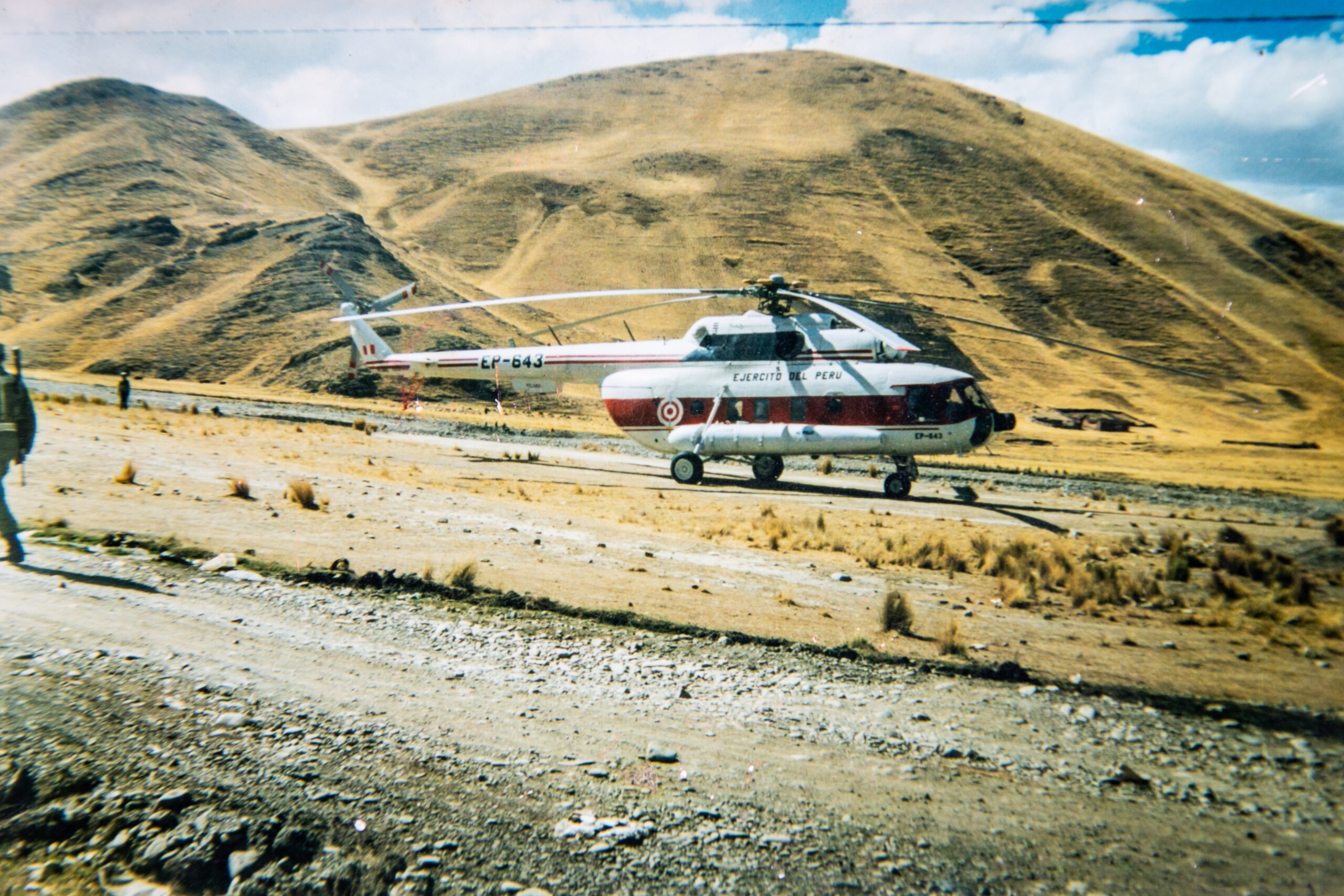 2. Cuando llego un helicóptero del ejército a Antauta, justo al frente del cementerio 1998