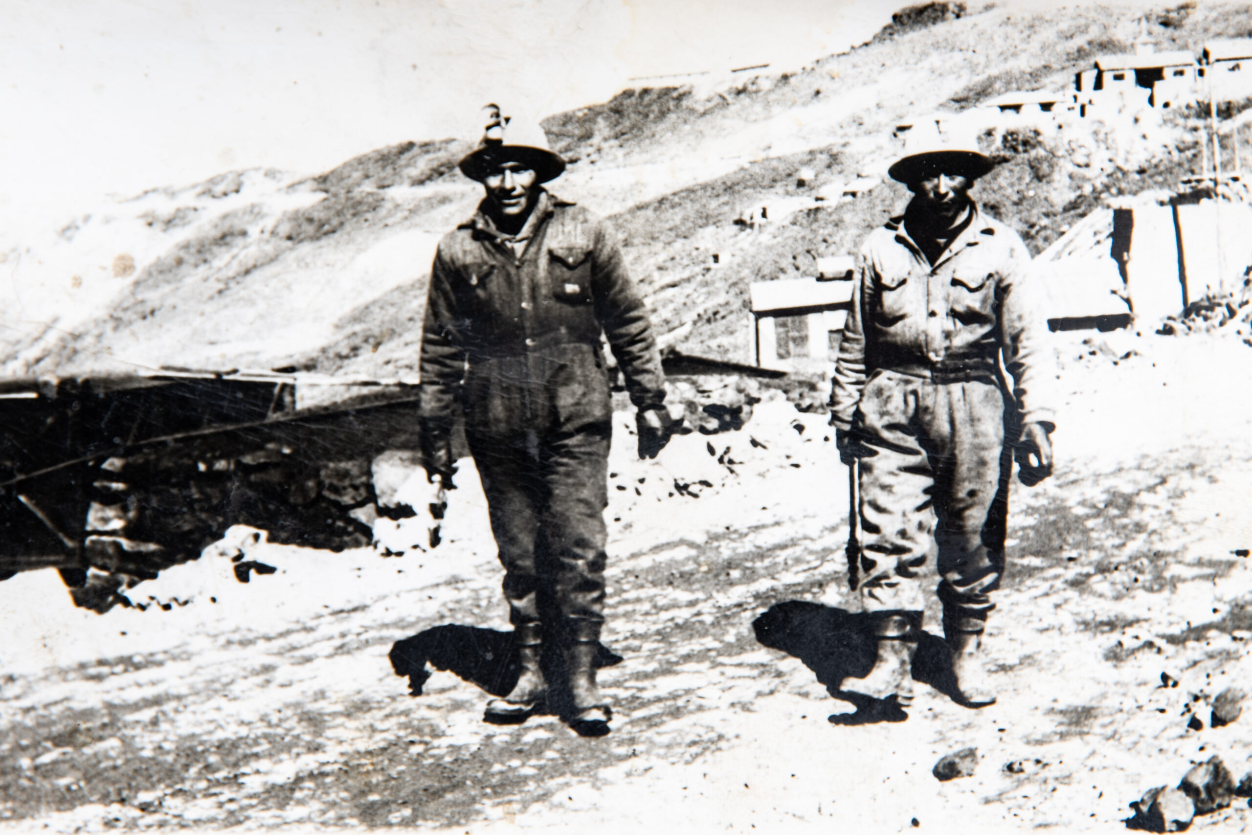 3. Francisco Barrionuevo Flores con su compañero de trabajo en la U.M. San Rafael en 1963, en la antigua Lampa Mining Company